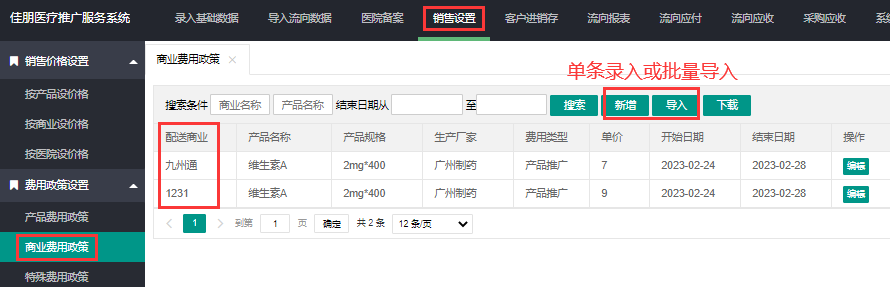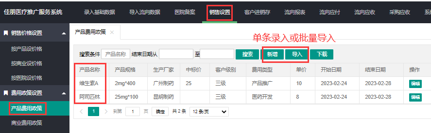 销售指标是按医院+产品+月份制定的;可以下载模板导入,或者单条添加;