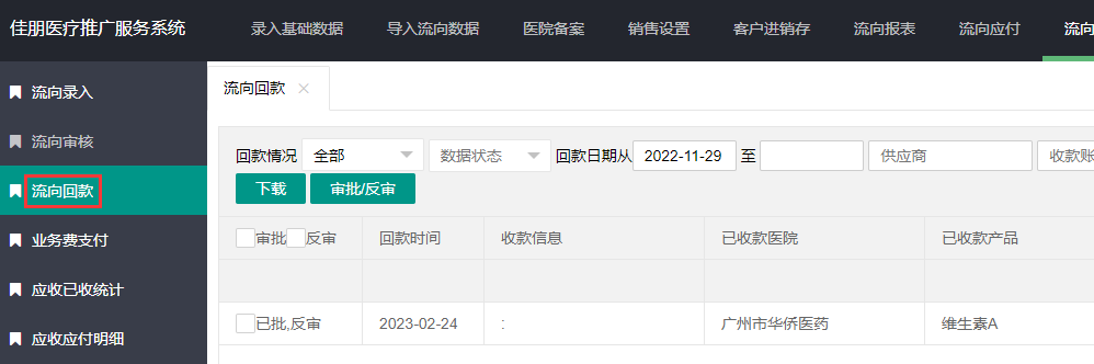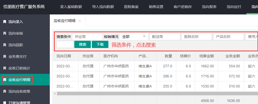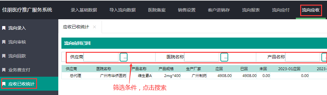 首先要设置“流向应收政策”,即供应商返款和业务费用结算的一种政策,系统就会根据这种政策,自动关联到导入的流向,计算出相应的应收应付费用。流向应收政策只有审批后方能生效。