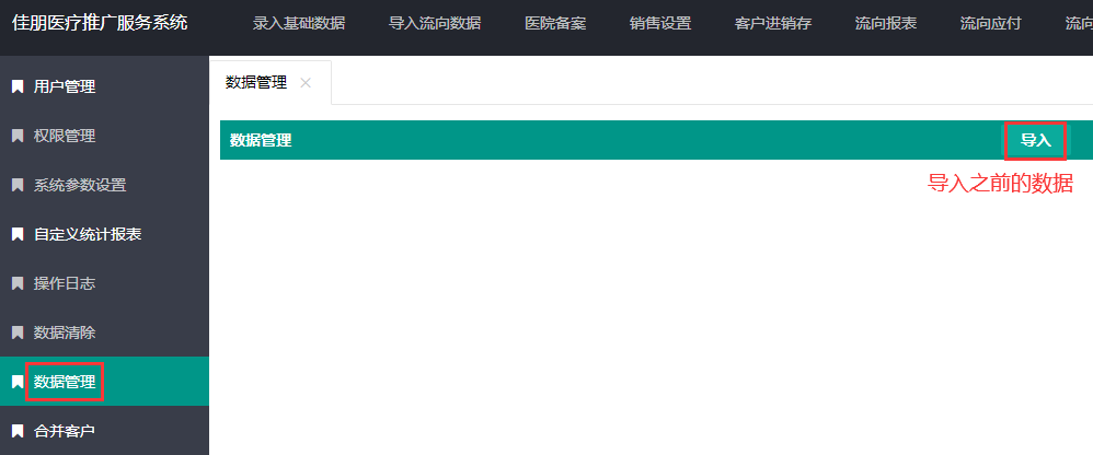 此菜单可以通过导入来恢复之前的数据;