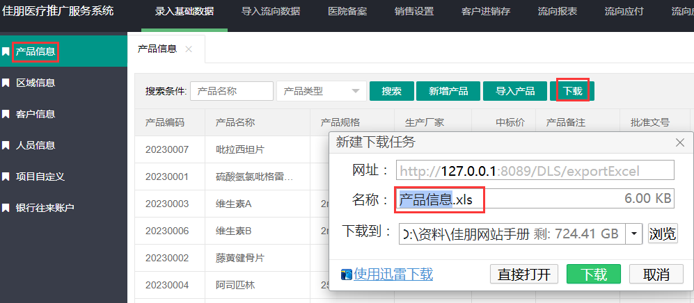 打开“产品信息”模块,在菜单栏,点击“下载”,保存。