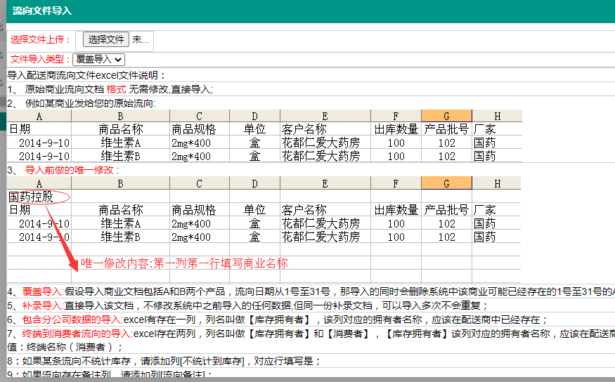不需要。每份文档在导入系统之前,都只需要做唯一一个修改,就是打开文档,添加一行,填写提供流向的商业名称。这份Excel表格不需要再做其他整理,直接导入。