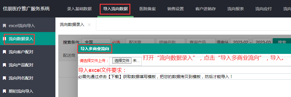 可以。打开“流向数据录入”,点击“导入多商业流向”,导入整理好的多个商业流向文档。