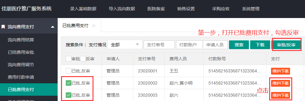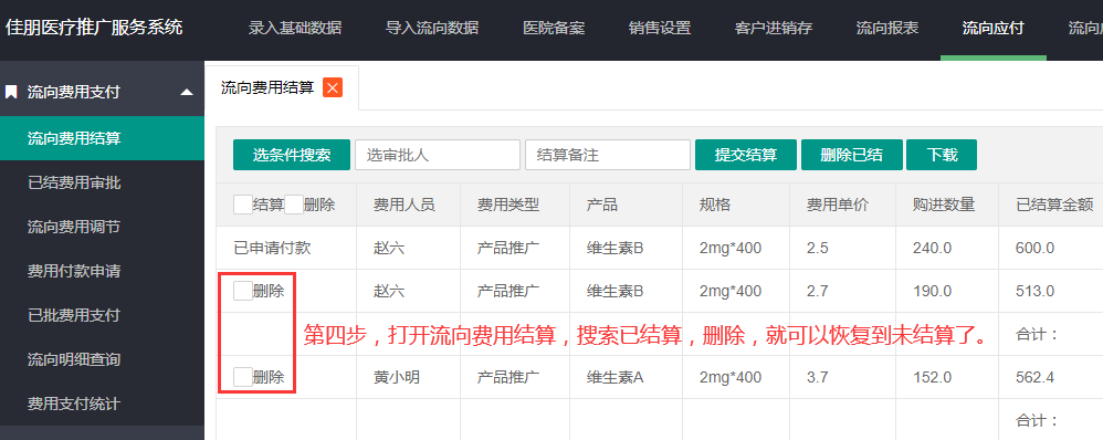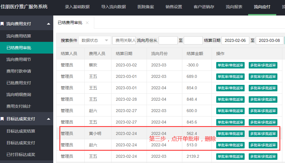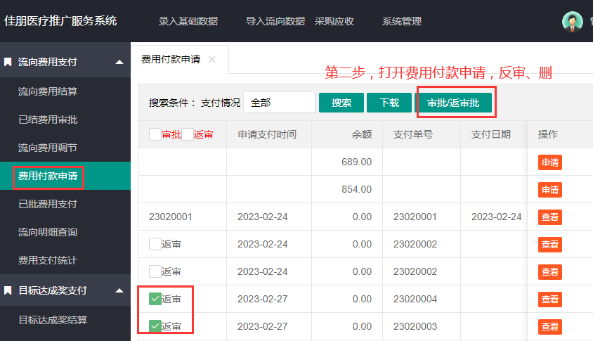 2、从操作最后一步开始往前反审删除。此操作方法也适用于流向应收、采购应收。